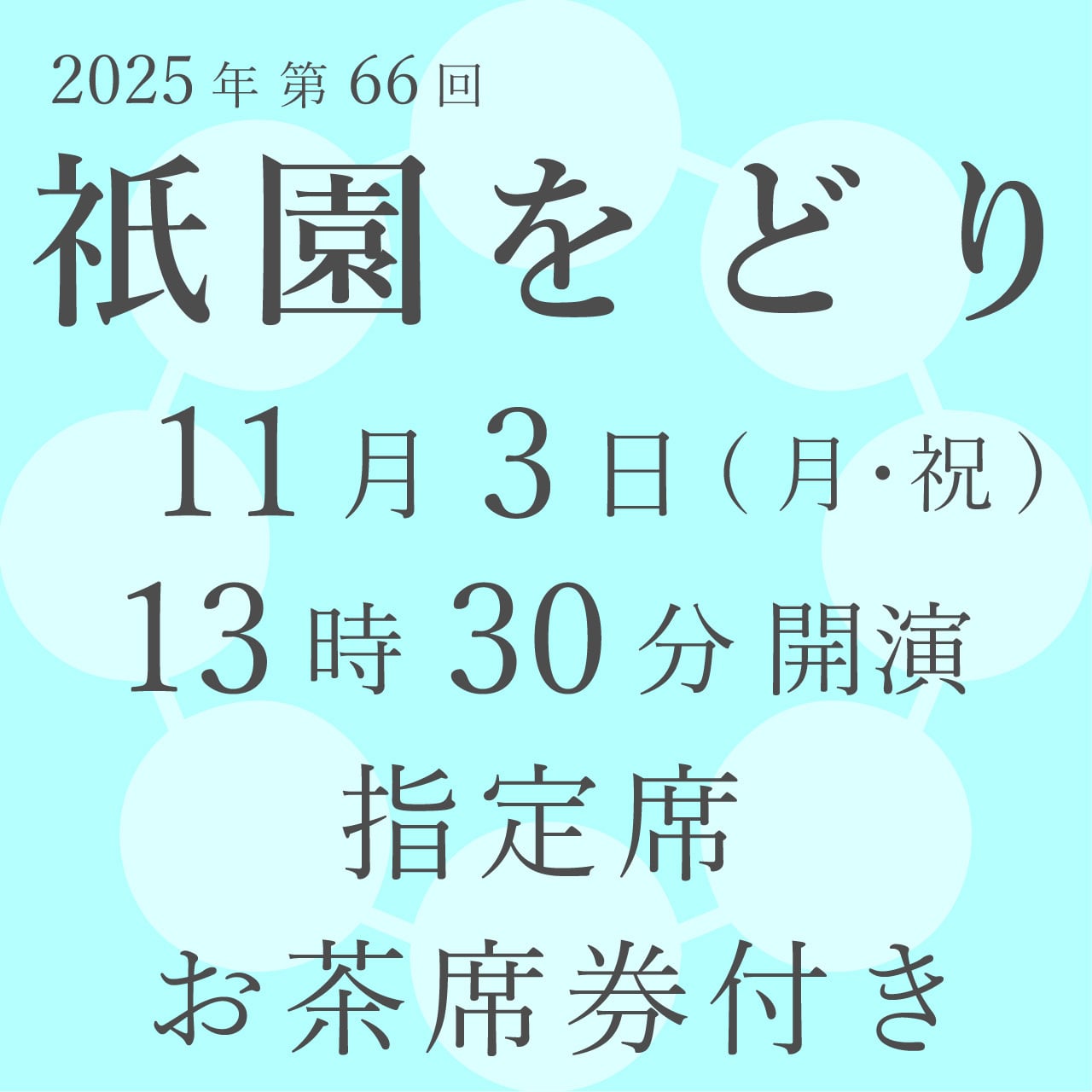 11月3日(月祝)13時30分開演 指定席 お茶席券付 【2025年祇園をどりご鑑賞券】 Gion Odori Ticket